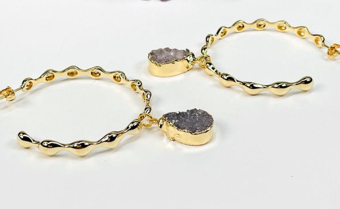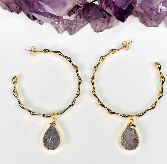 Elevate your style with these sparkling Agate Hoop Teardrop Earrings, featuring shimmering druzy stones hanging from sleek, lightweight hoops. The perfect mix of elegance and boho charm, these earrings add effortless shine, grounding energy, and a unique statement to any outfit. Ideal for lovers of crystal earrings, bohemian jewelry, and accessories.