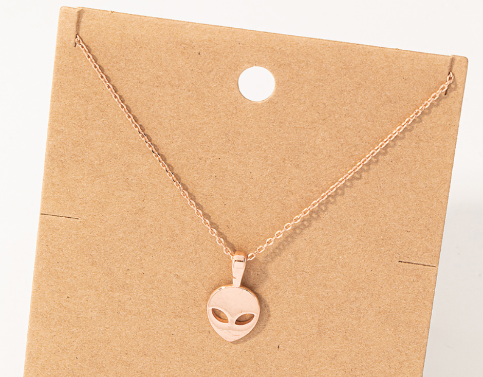 Show off your out-of-this-world style with this Alien Head Necklace, featuring a bold extraterrestrial pendant on a sleek chain. Perfect for lovers of statement jewelry, unique necklaces, and quirky boho accessories, this necklace adds a fun, edgy touch to any outfit. Ideal for wearing solo or layering for a cosmic-inspired look.