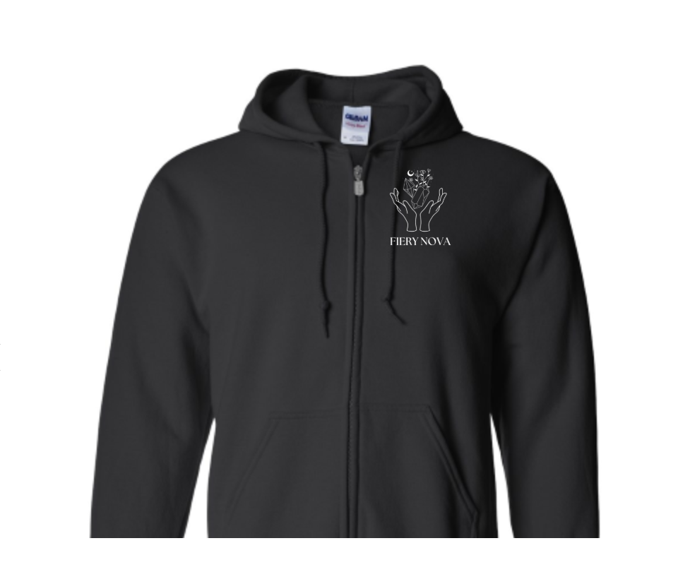 Known for its durability and plush fleece interior, the Gildan Heavy Blend gives you that thick, cozy feel without sacrificing style. Finished with subtle Fiery Nova branding, this hoodie pairs perfectly with your favorite jewelry and crystals.