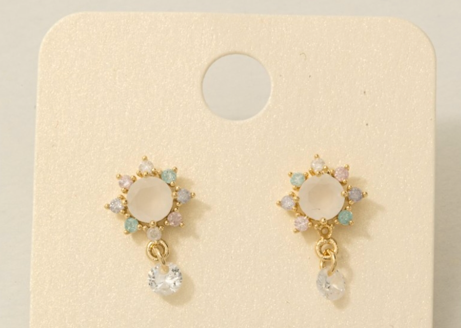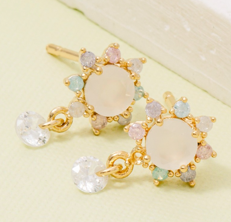 Delicate and whimsical, the Goli Earrings feature a charming flower design with a sparkling stone at the center, colorful accents on the petals, and a dainty drop stone at the bottom. Perfect for adding a playful, feminine touch to any outfit, these earrings are ideal for lovers of dainty jewelry, boho-chic accessories, and unique statement pieces. Wear them solo or layered for a sweet, colorful pop of elegance.