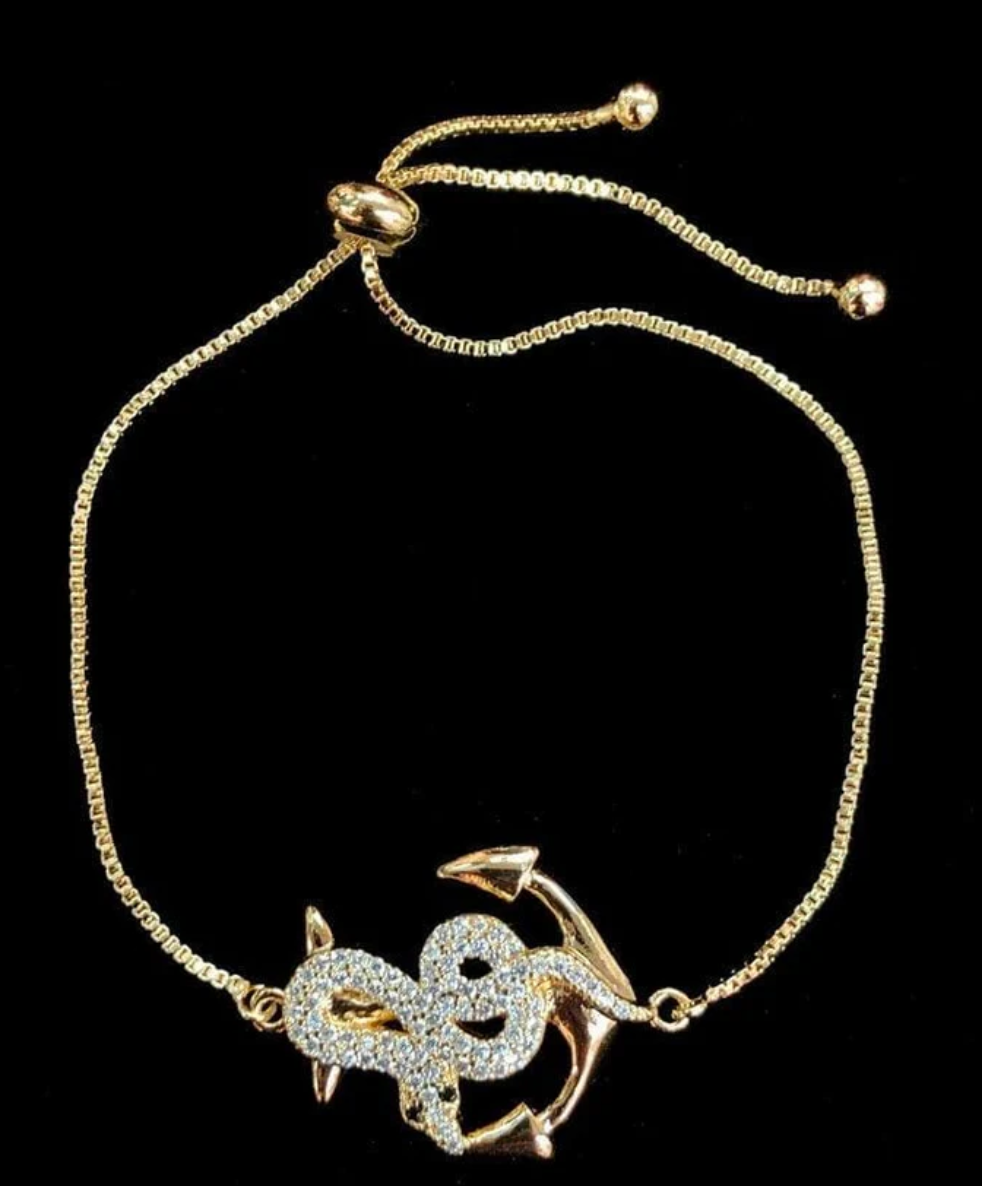 Make a bold statement with the Serpent Bracelet, featuring a sleek snake wrapped around an anchor for a unique, symbolic design. Crafted from premium brass, cubic zirconia, gold-filled, and completely hypoallergenic, this bracelet is also water- and sweat-resistant—perfect for everyday wear. Symbolizing strength, protection, and resilience, the Serpent Bracelet is ideal for lovers of boho jewelry, statement pieces, and durable, high-quality accessories.